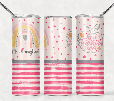 Custom Best Teacher Ever 20 oz Tumbler Sublimation Transfer