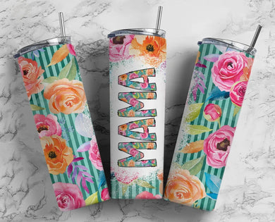 Mama Floral Stripes Flag 20 oz Tumbler Sublimation Transfer