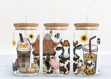 Farm animal coffee 16 oz Libby Can Sublimation Transfer