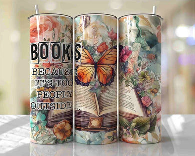Books Because it's too peoply outside 20 oz Tumbler Sublimation Transfer