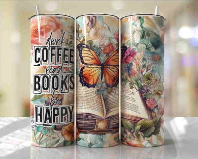 Drink Coffee, Read books, Be Happy 20 oz Tumbler Sublimation Transfer