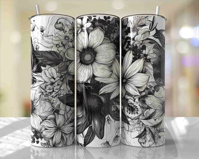 Black and White Flowers 20 oz Tumbler Sublimation Transfer