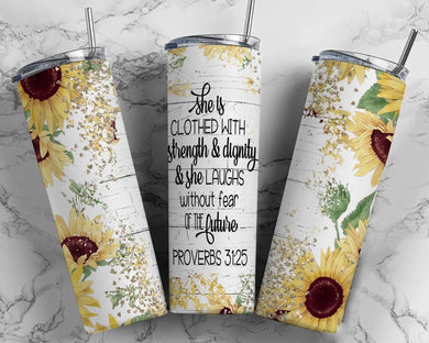 She is Proverbs 31:25 20 oz Tumbler Sublimation Transfer