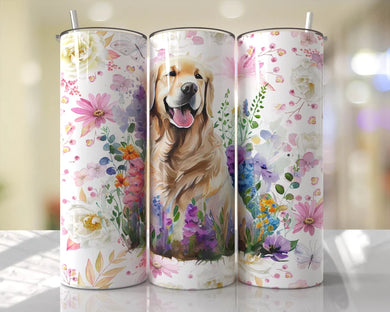Golden Retriever Floral Dog 20 oz Tumbler Sublimation Transfer