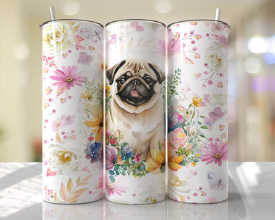 Pug Floral Dog 20 oz Tumbler Sublimation Transfer