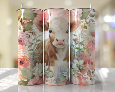 Floral Brown and white calf 20 oz Tumbler Sublimation Transfer