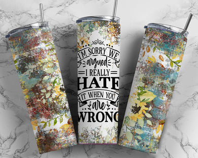 I really hate it when you are wrong 20 oz Tumbler Sublimation Transfer