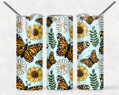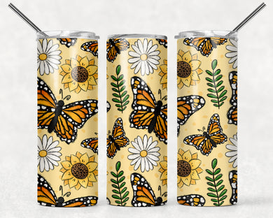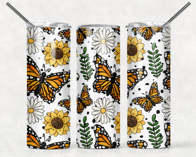 Butterflies and Sunflowers 20 oz Tumbler Sublimation Transfer