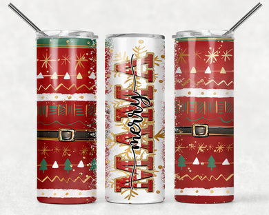Merry Mama Santa belt 20 oz Tumbler Sublimation Transfer