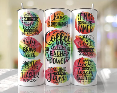 Coffee gives me teaching power bright 20 oz Tumbler Sublimation Transfer