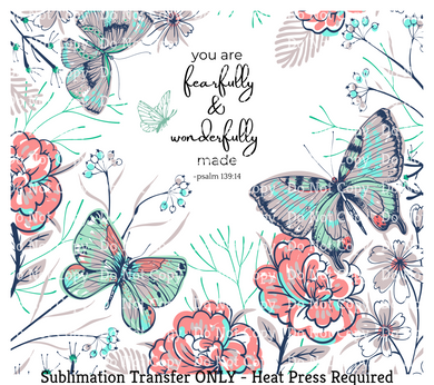 You are fearfully and wonderfully made with butterflies Tumbler 20 oz Tumbler Sublimation Transfer