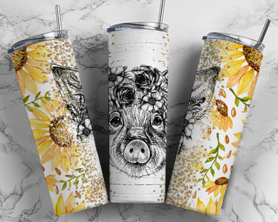 Pig and Sunflower 20 oz Tumbler Sublimation Transfer