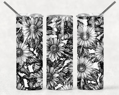 Black and White Sunflowers 20 oz Tumbler Sublimation Transfer