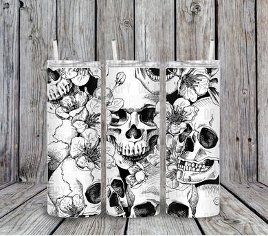 Black and White Skulls Print 20 oz Tumbler Sublimation Transfer