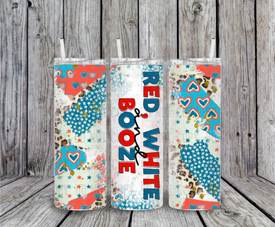 Red White and Booze 20 oz Tumbler Sublimation Transfer